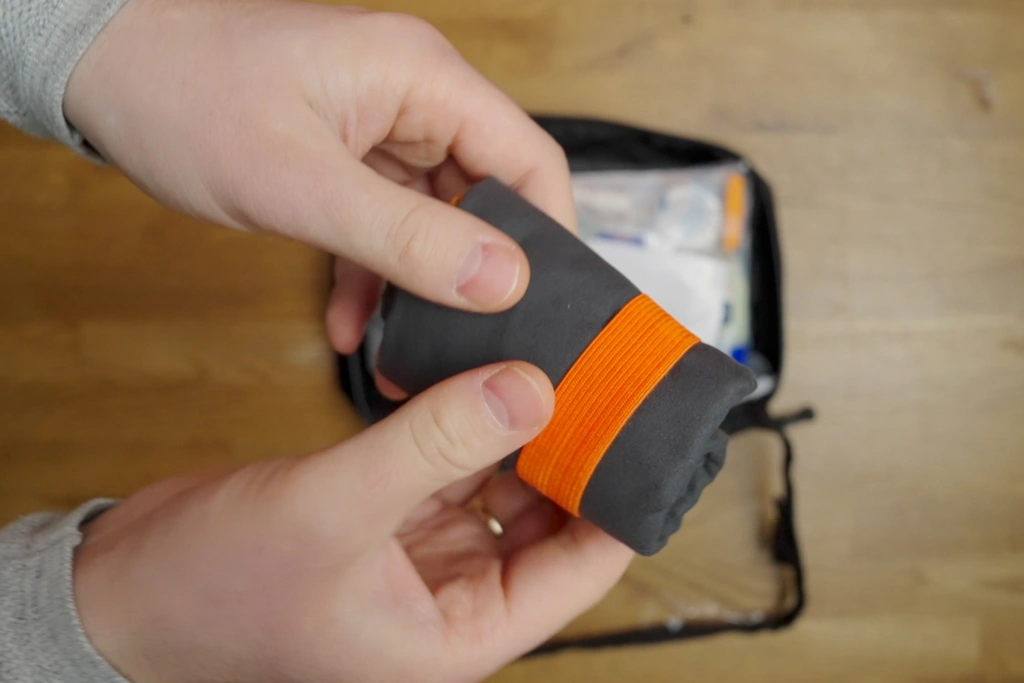 Håndkleet er pakket i etui med snor, tar svært lite plass.