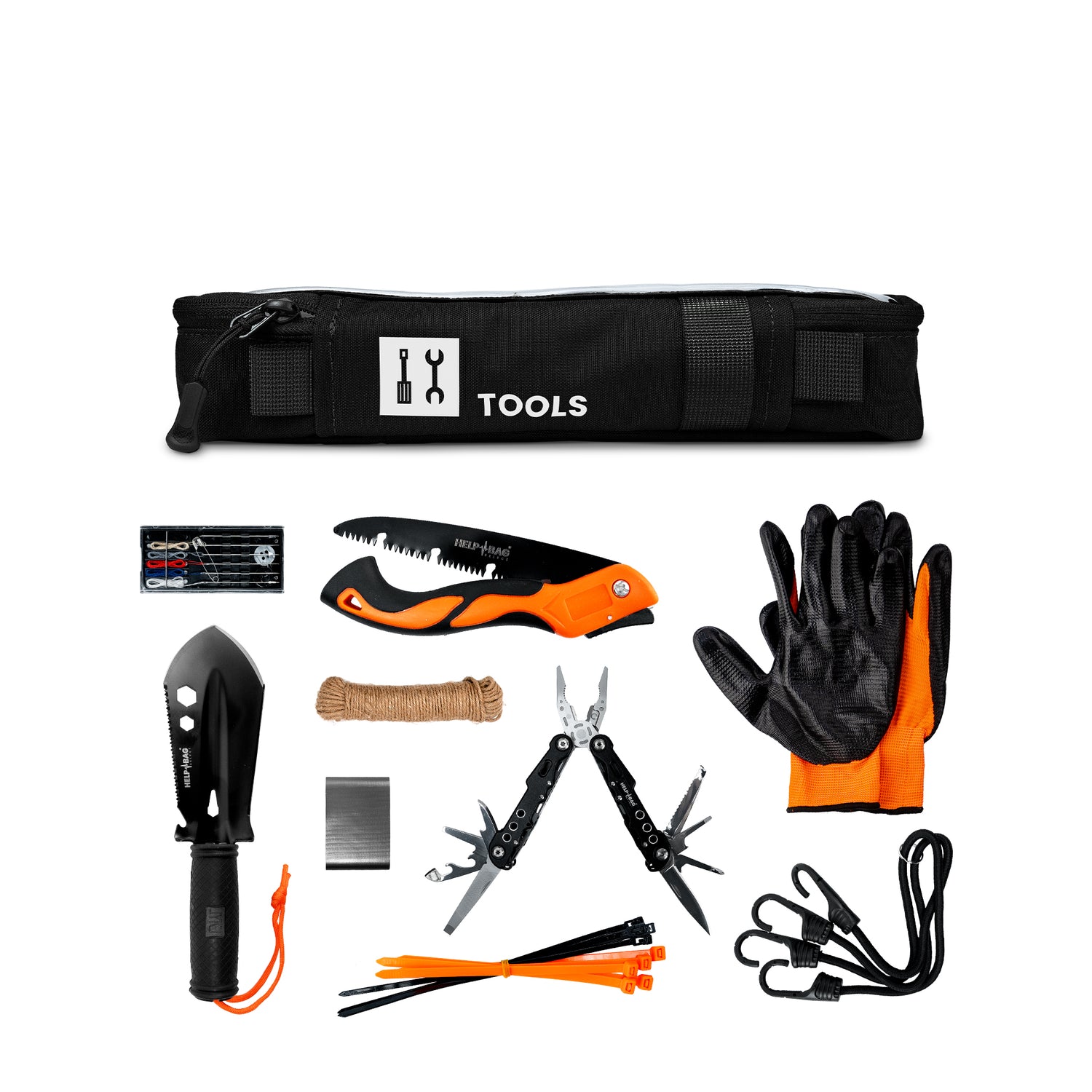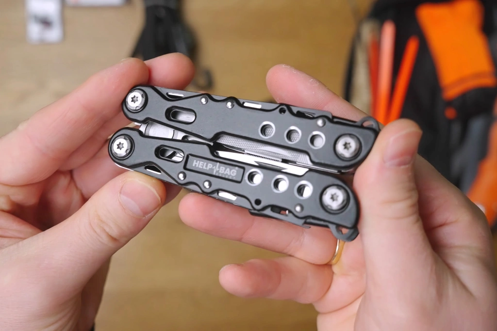 Multiverktøyet er laget av rustfritt stål og har flere praktiske verktøy som kan være nyttige i nødsituasjoner.